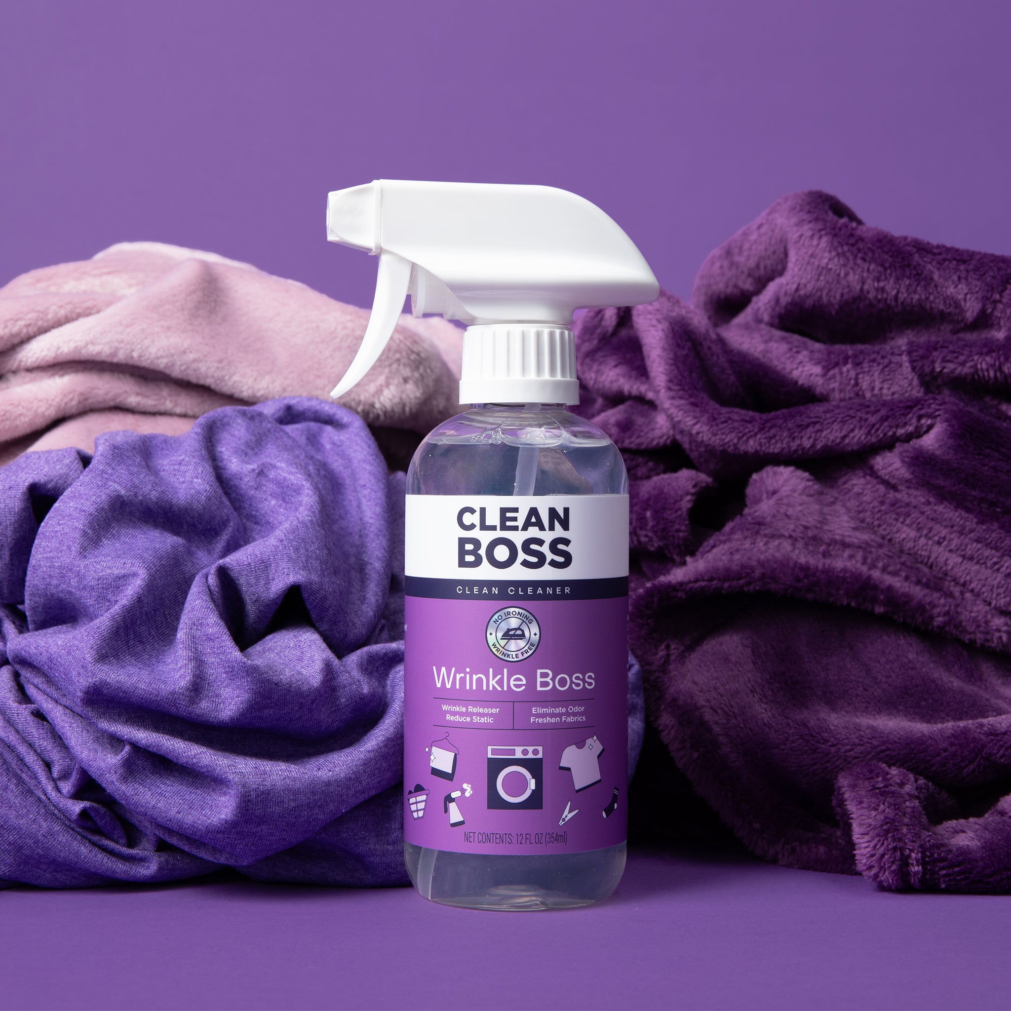 Finish strong with Wrinkle Boss Wrinkle Release Spray — the fast, no-heat solution to smooth wrinkles in seconds. Just spray, snap, and go. This bio-based, botanically derived formula relaxes fabric fibers naturally while reducing static and refreshing clothes with a subtle clean scent.