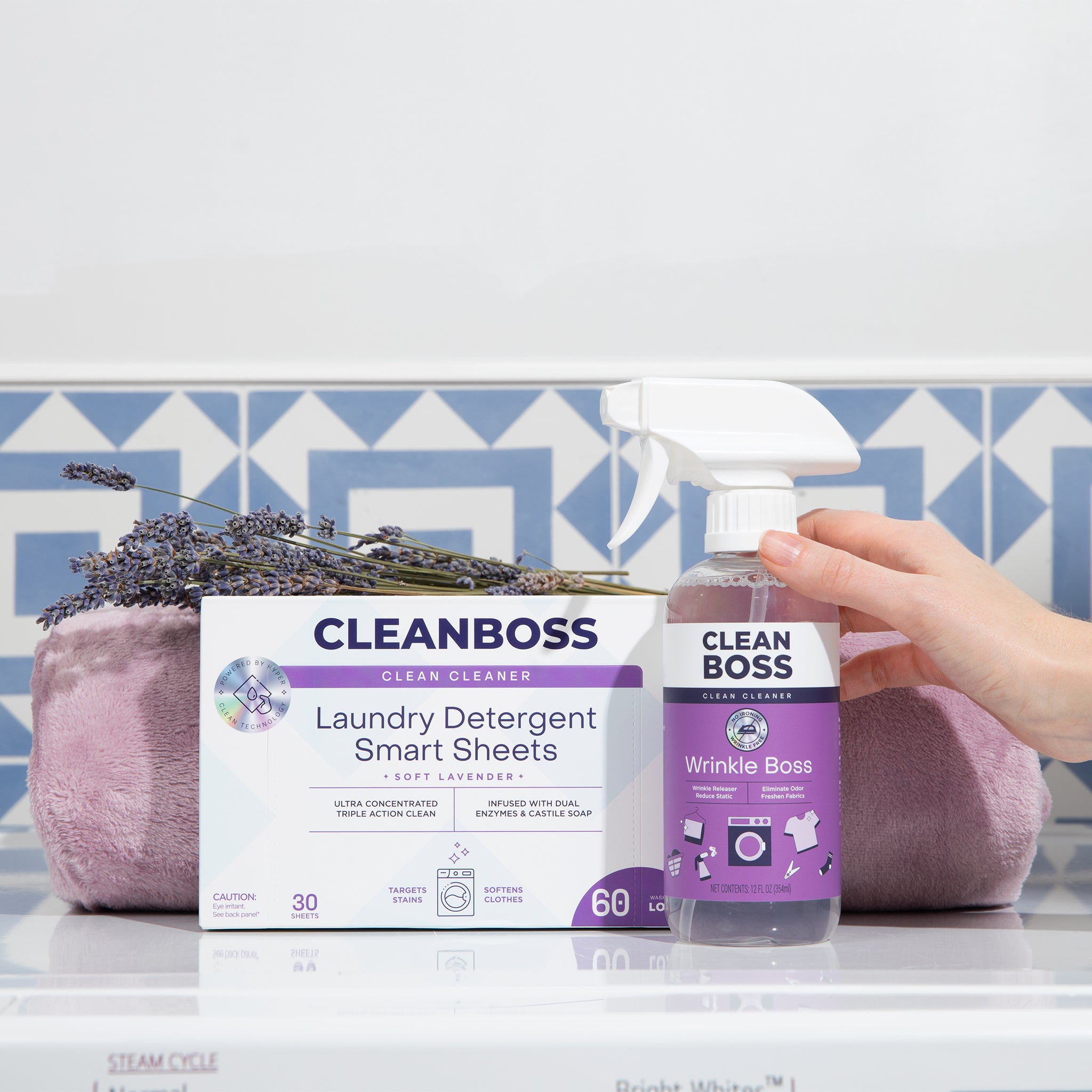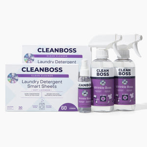 Meet the ultimate clean-to-wear solution: the CleanBoss Wrinkle-Free Laundry Duo. This perfectly paired set combines CleanBoss Laundry Detergent Smart Sheets with Wrinkle Boss Wrinkle Release Spray to take your clothes from wash day to wrinkle-free wear — effortlessly.