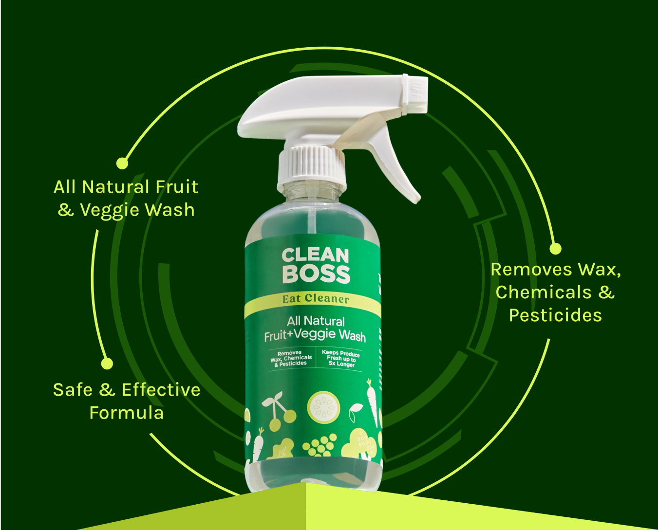10 years ago, Environmental Health Scientist, Dr. Ibrahim, discovered with his daughter that a specific set of all-natural elements effectively breaks apart surface wax. As a result, our patented Eat Cleaner formula washes away up to 99.9% of pesticides and chemicals found on store-bought fruits and vegetables.