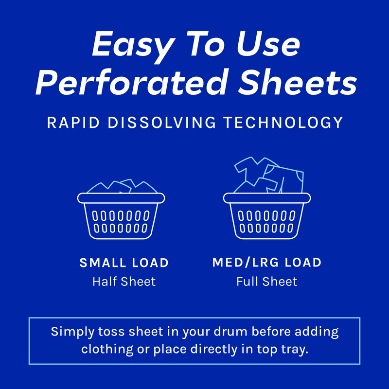 Smart Sheets vanish in seconds even in cold water so all that’s left is spotless laundry. NO residue.